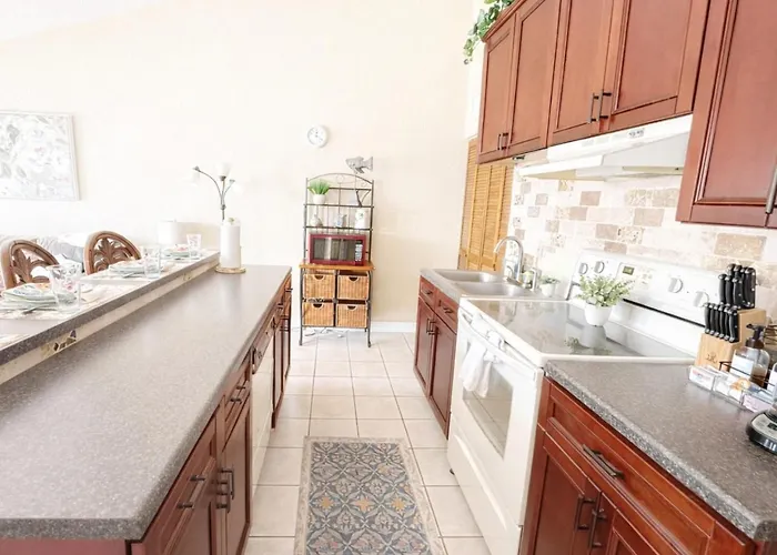Villa comprend une cuisine complète dotée d'un four et d'un lave-vaisselle.